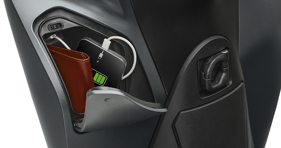 Với dung tích rộng rãi, hộc đựng đồ phía trước được trang bị cổng sạc USB type C tiện dụng cho phép sạc pin điện thoại khi cần.