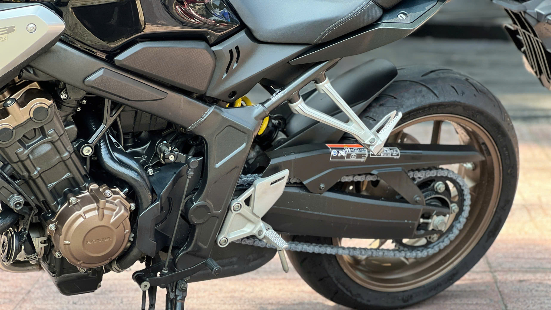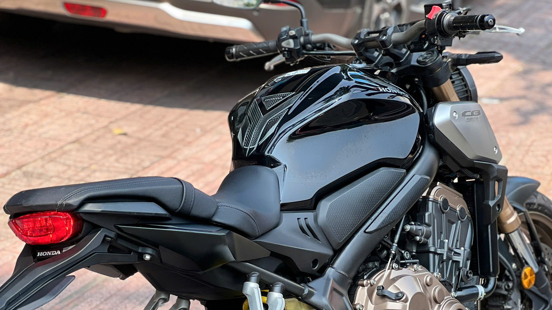 CB650R 2019 màu Đen – phiên bản naked bike Neo Sports Café nổi bật của Honda, sử dụng động cơ 649cc DOHC 4 xi-lanh thẳng hàng, mang lại cảm giác kéo tua rất đặc trưng của dòng 4 máy. Xe được trang bị phanh ABS 2 kênh, phuộc trước USD Showa SFF 41mm, hệ thống kiểm soát lực kéo HSTC, ly hợp assist/slipper, đèn LED toàn bộ và màn hình LCD hiển thị cấp số. ODO 26.000 km